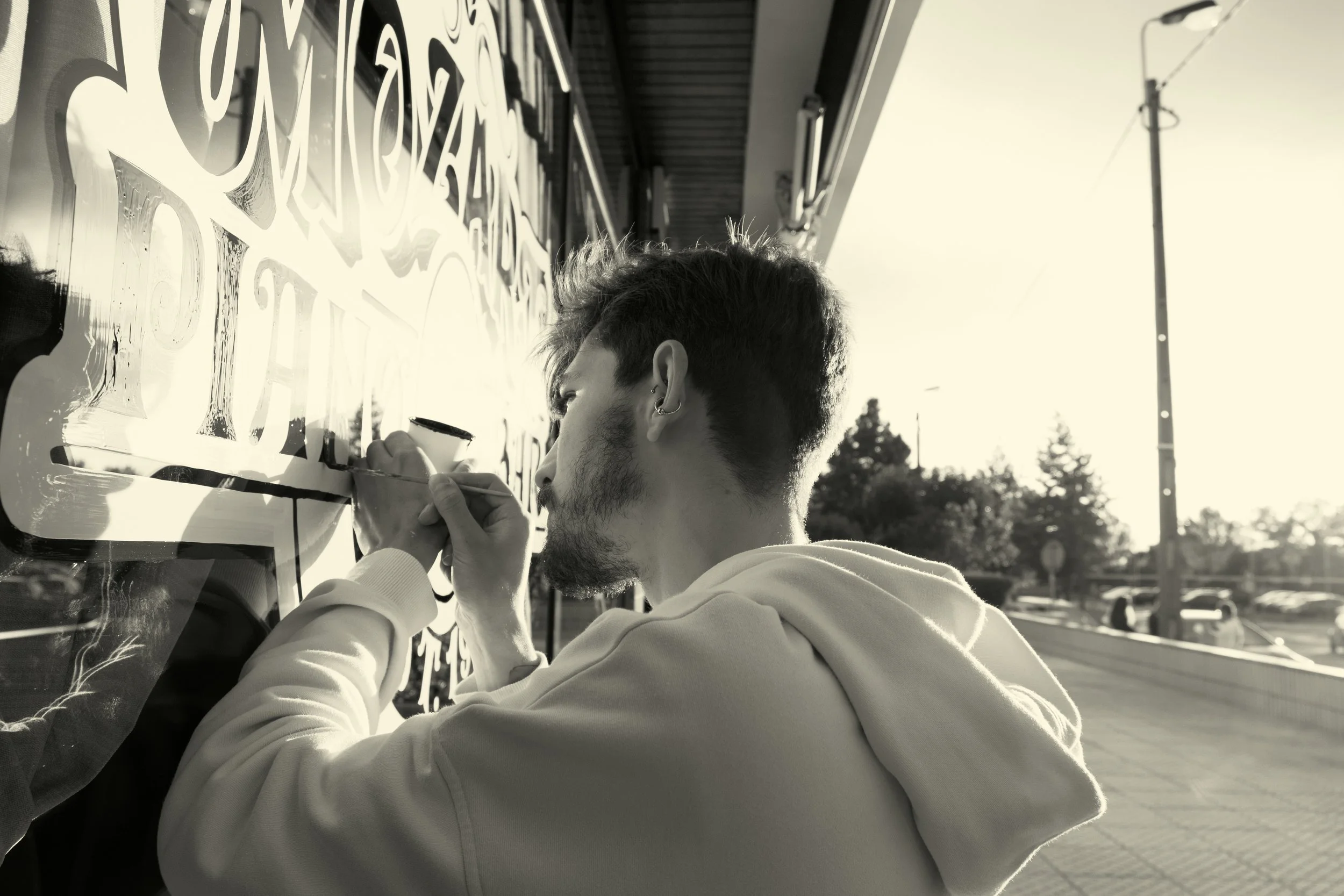 Trabalho com arte tradicional de Sign Painting, criando montras, sinais e murais únicos, pintados à mão, utilizando técnicas que atravessam gerações.